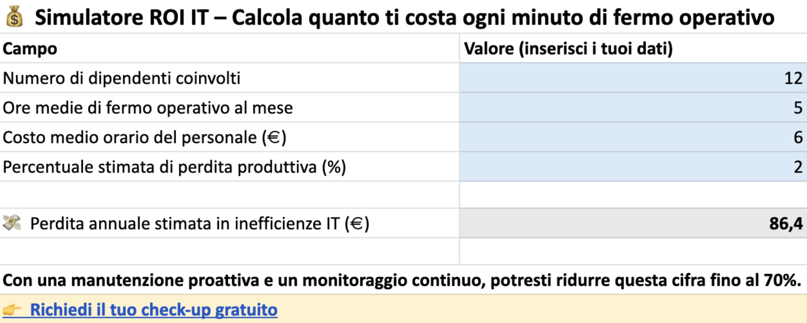 Uno strumento semplice per calcolare in pochi minuti quanto potresti risparmiare ottimizzando la tua infrastruttura IT.